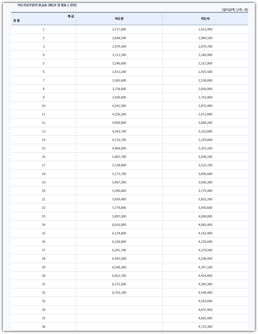 ■ 지도직공무원 봉급표
