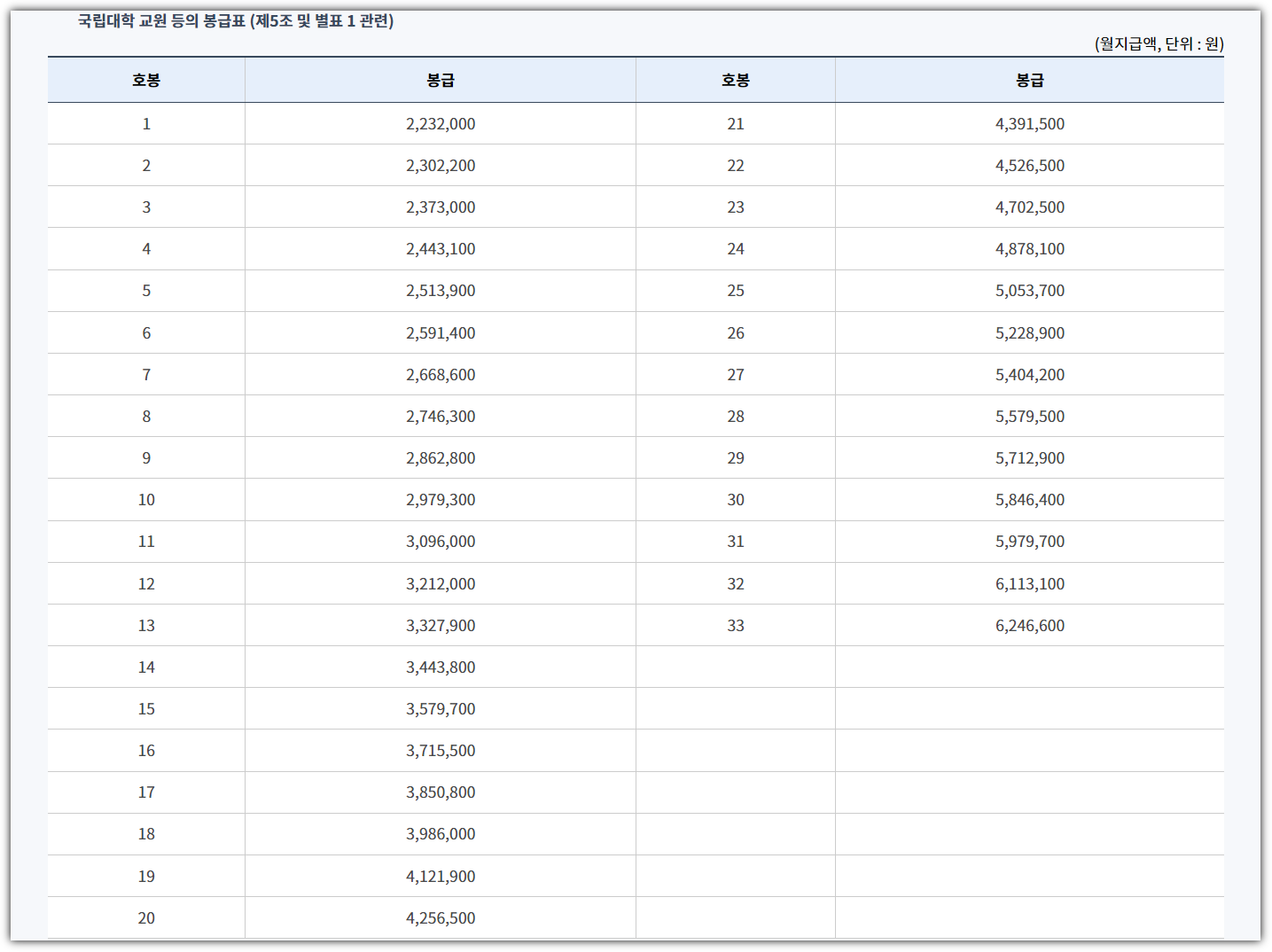 ■ 국립대학 교원 등 봉급표