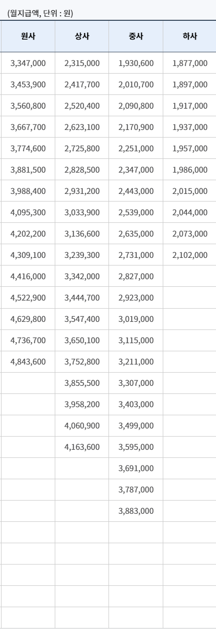 ■ 군 인 봉급표