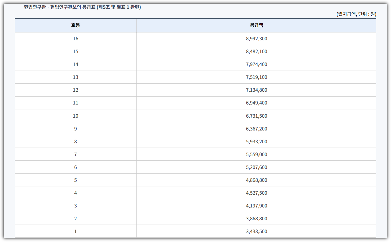 ■ 헌법연구관·헌법연구관보 봉급표