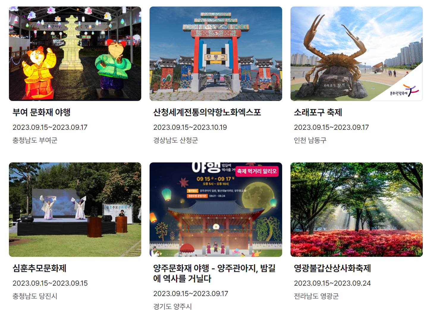 9월 축제 가볼만한 곳 전국 일정표 (2023년)