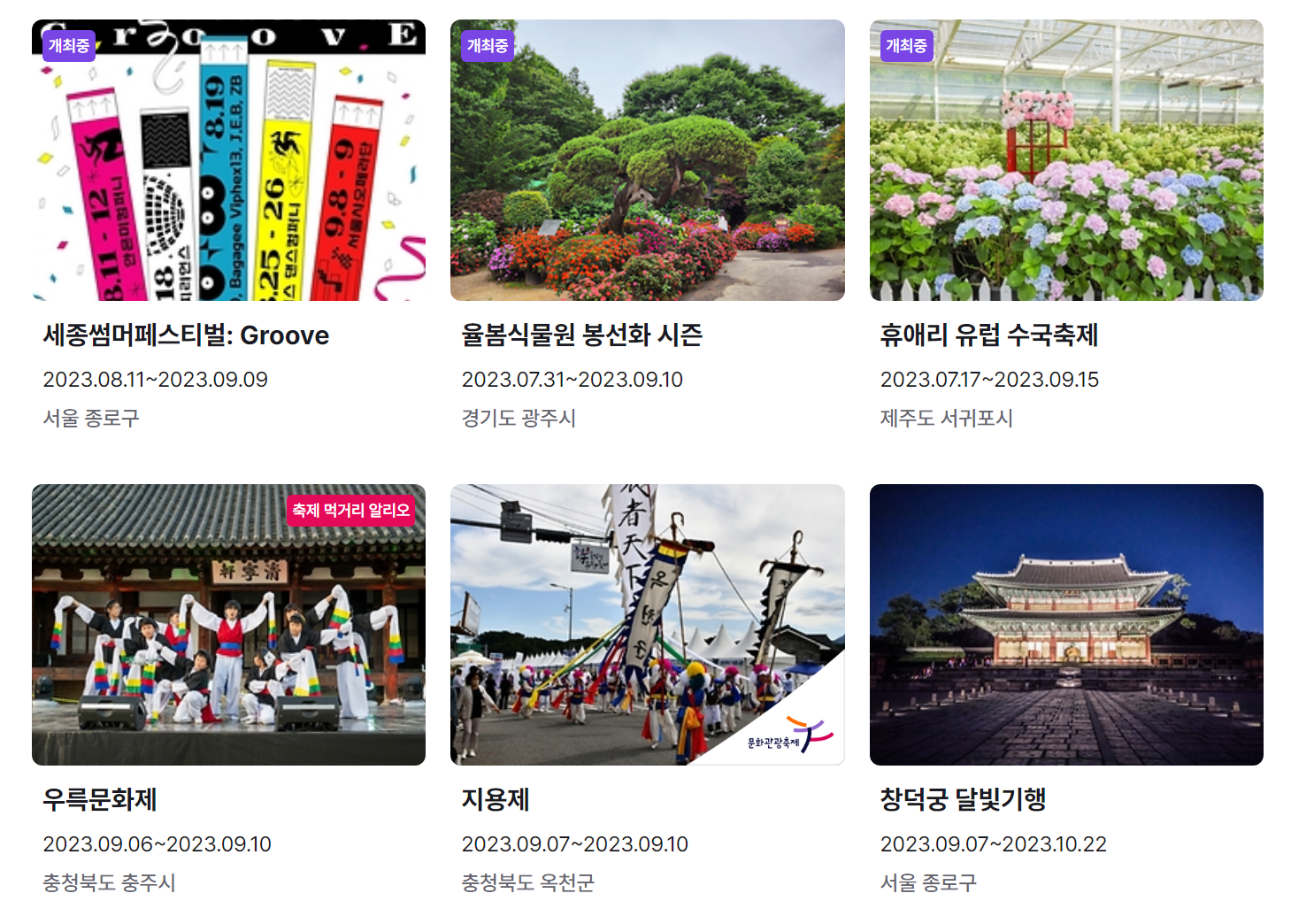 지금까지 9월 축제 가볼만한 곳 전국 일정표 (2023년)와 9월 축제 추천 행사를 정리했습니다. 요즘 계속해서 내리는 비로 인해 어느덧 더위는 물러나고 선선한 바람이 기분 좋은 날씨가 된 것 같습니다.