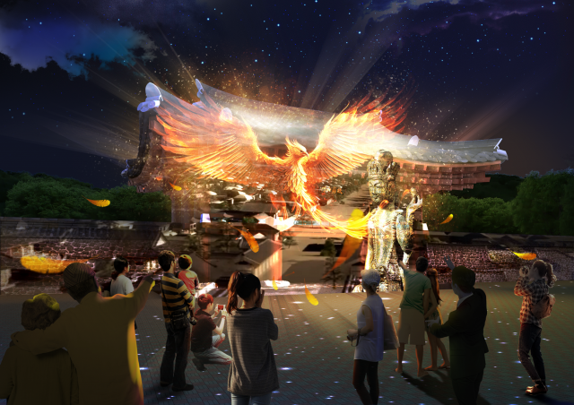 금동대향로 맵핑영상, 미디어 숲, 라이트 경관조명, 윈드 설치 조형물과 음향을 활용한 사비바람부터 사비백제의 왕궁까지 색 다른 미디어아트의 진수를 느낄 수 있습니다.
