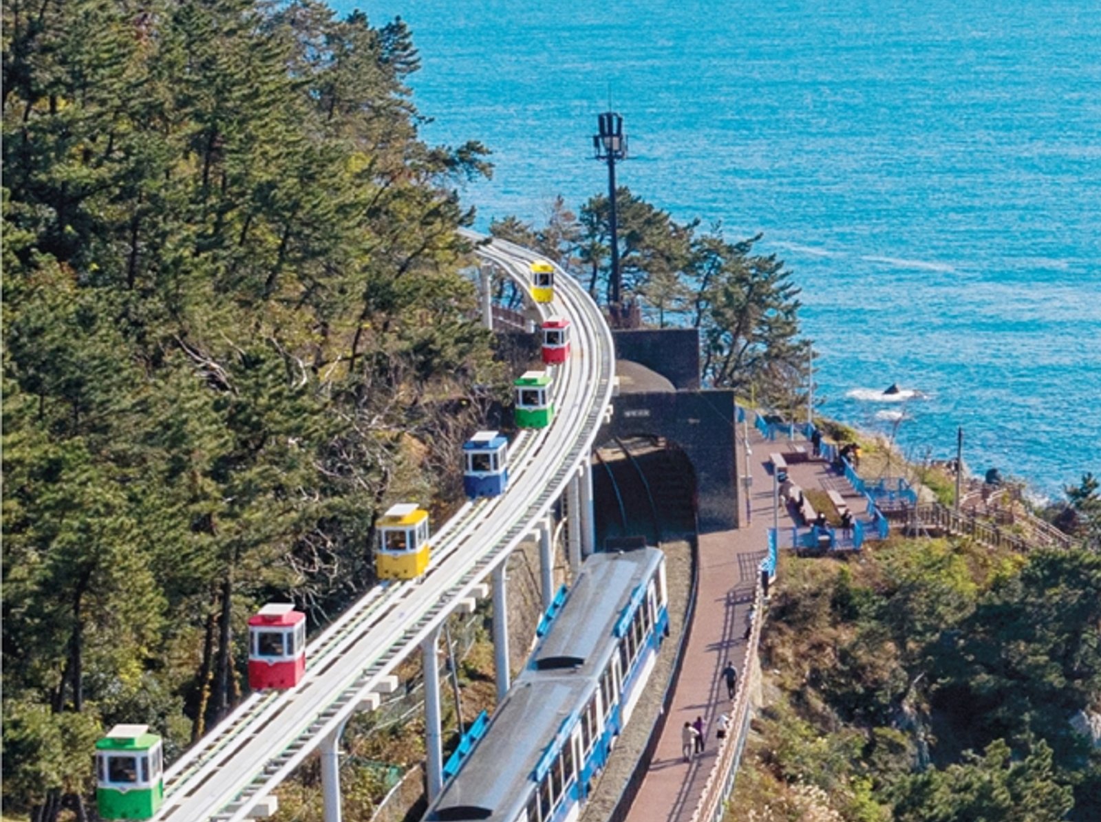 여행객들이 뽑은 부산 가볼만한곳 베스트 중 한곳인 해운대 블루라인파크는 동해남부선 폐선을 활용한 곳입니다. 잊혀진 옛 철길을 달리는 해변열차와 스카이캡슐을 체험할 수 있으며 아름다운 철길로 유명했던 동해남부선 철로를 따라 친환경적으로 개발된 관광 시설입니다. 해변열차를 타시면 미포정거장에서 떠나 달맞이터널-청사포-다릿돌전망대-구덕포-구 송정역의 코스로 이어지는데요, 전 좌석이 바다를 보는 방향으로 고정되어 있어 아름다운 해안 절경을 가는 내내 즐길 수 있습니다. 반면 스카이캡슐은 머리 위를 지나가는 높이로 최근 젊은 층에게 인기가 있는 여행지인데요, 미포정거장에서 청사포정거장까지 운행하며 해변열차와 다르게 최대 4인까지 팀 단위로 탑승합니다. 약 30분 동안 바다를 내려다보며 마음껏 사진찍기를 즐길 수 있어요. 참고로 노을이 지는 시간에 스카이캡슐을 이용하면 환상적인 풍경을 만날 수 있는데요, 이 ‘선셋 타임’에는 탑승권이 빠르게 매진될 수 있으니 참고하시기 바랍니다.