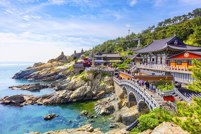 우리나라의 삼대 관음성지하면 양양 낙산사, 남해 보리암과 더불어 부산의 해동 용궁사가 있습니다. 고려말 고승인 나옹 스님이 이곳 토굴에서 수행정진을 했다고 전해지고 있는데요, 1974년 정암스님이 이 절의 주지가 된 이후 꿈에서 흰옷을 입은 관세음보살이 용을 타고 승천하는 것을 보았다고 해요. 해동 용궁사라는 이름이 이렇게 유래된 것이라고 하네요. 용궁사는 기장군 해안가에 위치하고 있어 대웅전을 등지고 서서 바다를 바라보면 푸른 바다의 파도치는 모습을 생생히 즐길 수 있는데요, 외국인을 비롯하여 늘 사람들로 북적이는 인기 여행지이기도 합니다. 산책코스로도 좋고 입구에 씨앗호떡을 파는데 유명하다고 해요.