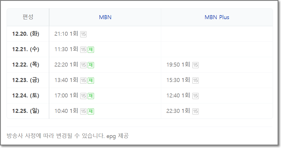 방송 기간 : 2022년 12월 20일 ~ (예정)