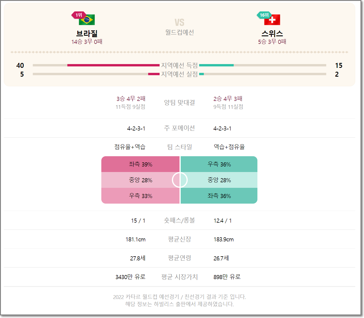 브라질 스위스 피파랭킹
