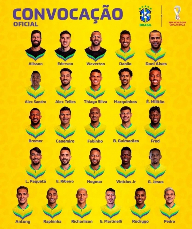 ▲ 공격수=네이마르(파리 생제르맹), 안토니(맨체스터 유나이티드), 가브리엘 제주스, 가브리엘 마르티넬리(이상 아스널) 페드루(플라멩고), 하피냐(바르셀로나), 히샤를리송(토트넘), 호드리구, 비니시우스 주니오르(이상 레알 마드리드)
